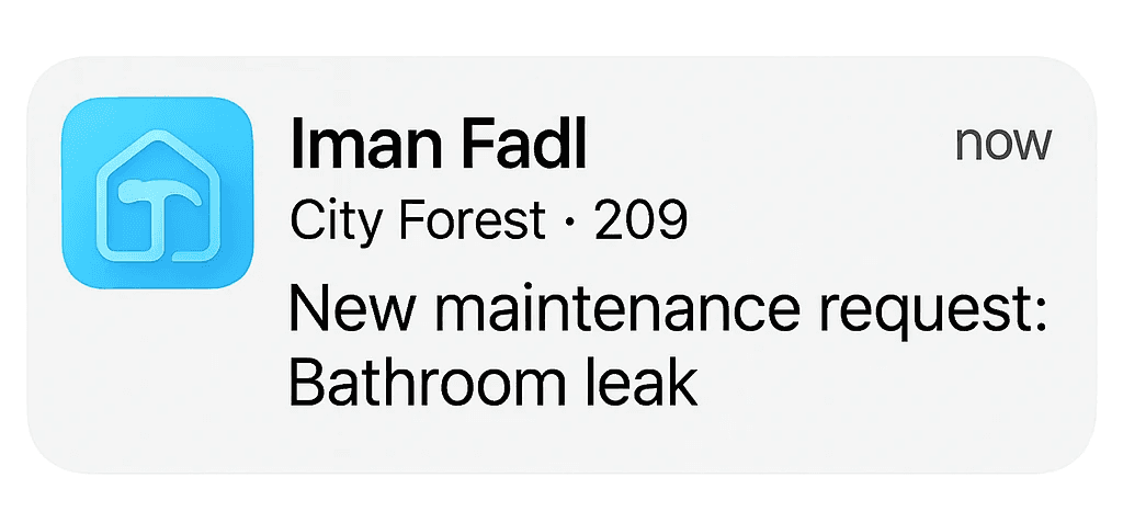 When a tenant creates a new maintenance request, supervisors and technicians get a notification with building, unit and category details in seconds.